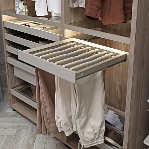 - Наполнение шкафа в единой стилистике. В коллекцию входят все элементы для оборудования шкафа или гардеробной в едином стилистическом и цветовом решении.